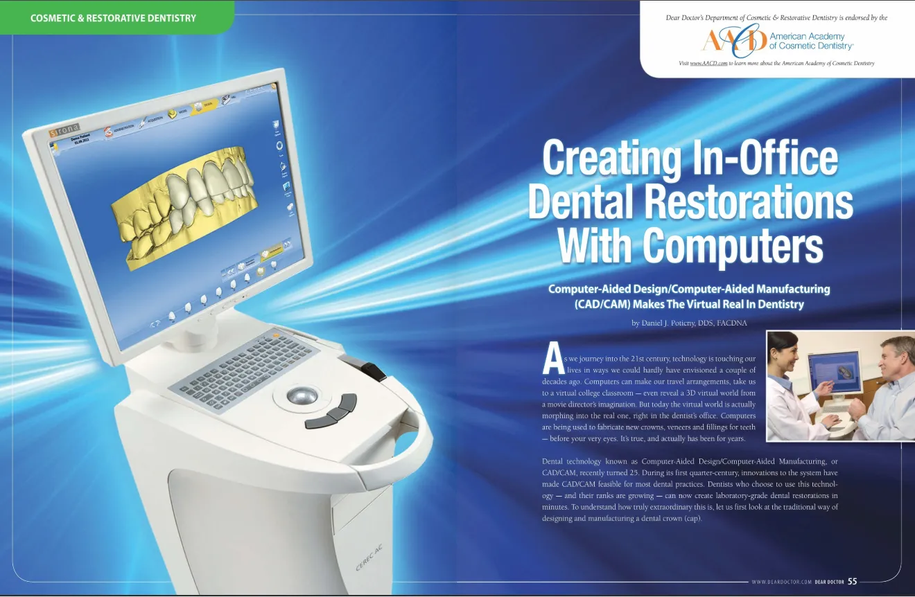 Advanced dental technology known as Computer-Aided Design/Computer-Aided Manufacturing, or CAD/CAM, makes it possible to fabricate laboratory-grade crowns and other dental restorations in minutes. It's an amazing innovation when you consider that traditionally, crowns take two or three visits and just as many weeks of waiting. Now you can have a restored tooth without the wait.